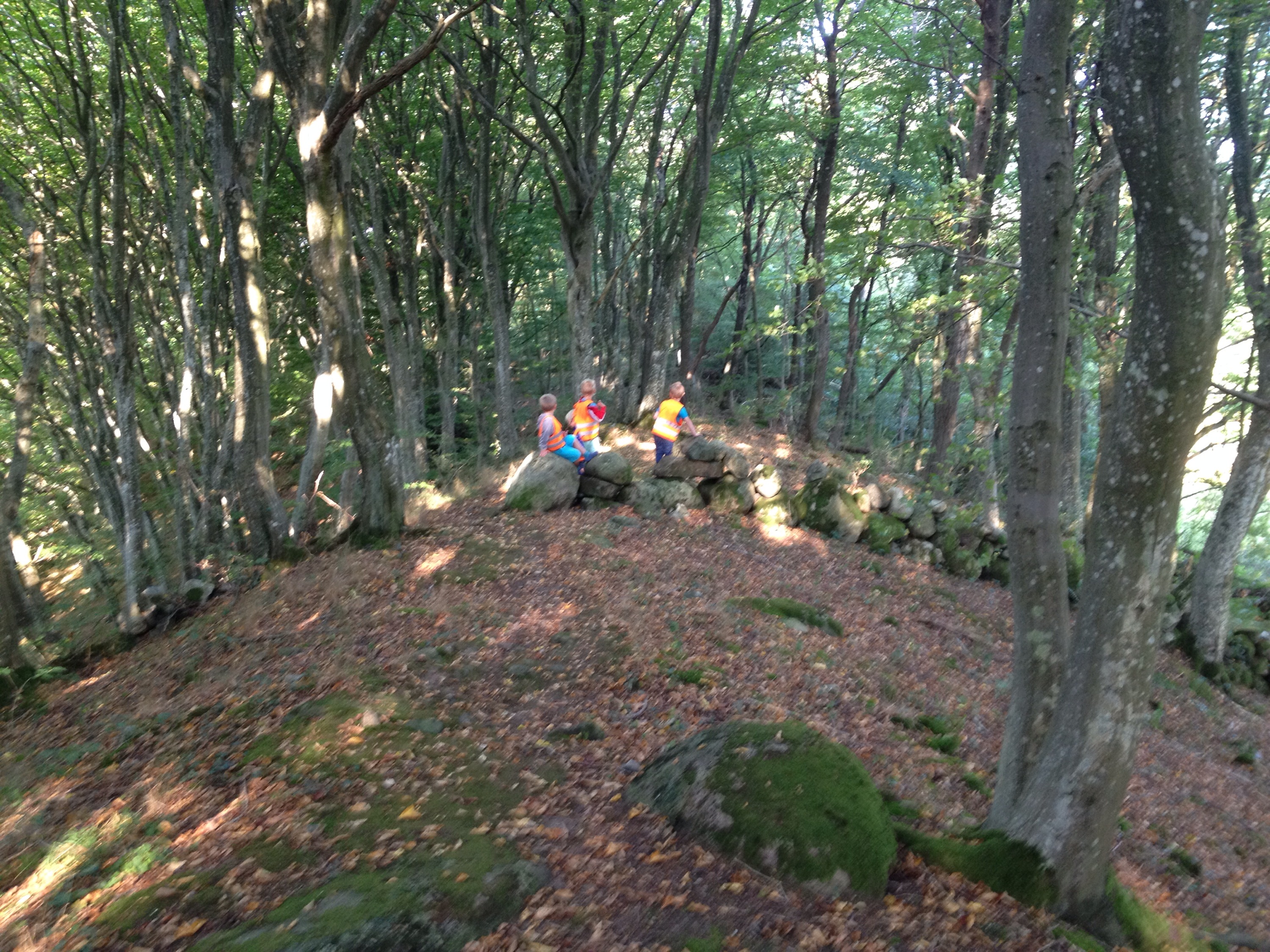 Utedag i skogen, Gårdslösaleden. Härlig promenad där vi upplevt skogen med våra sinnen. Vi har lyssnat, luktat, tittat och känt. Flera olika små djur har vi träffat på och pratat om. Turen avslutades hemma hos Lina där vi hälsade på hunden, ankorna och kaninerna. Vi tittade även efter några av barnens hus.