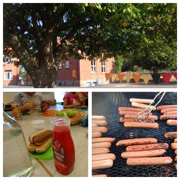 Idag har Spadenbarnen varit med på Skoljoggen. Vi startade med uppvärmning tillsammans med skolbarnen på skolgården. Vi gick, joggade och kämpade på fram och tillbaka till Pileparken i det härliga vädret. Tillbaka på skolgården fick vi sugrörsdricka, grillad korv med bröd och frukt. Gott!